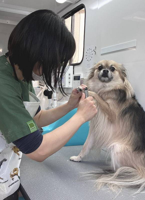 原則として愛玩動物看護師が一名でお伺いし、ワンちゃんを車内(エアコン完備)にお預かりして施術します。