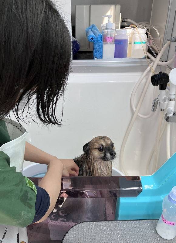 ・必要に応じて部分カットや簡易トリミングを承ることは可能ですが(オプション料金)、原則としてデザインカットやトリミングは実施しておりません。あくまで私たちの専門は獣医療クオリティのシャンプーであって、カットに関してはプロのトリマーさんの技術をリスペクトしています。